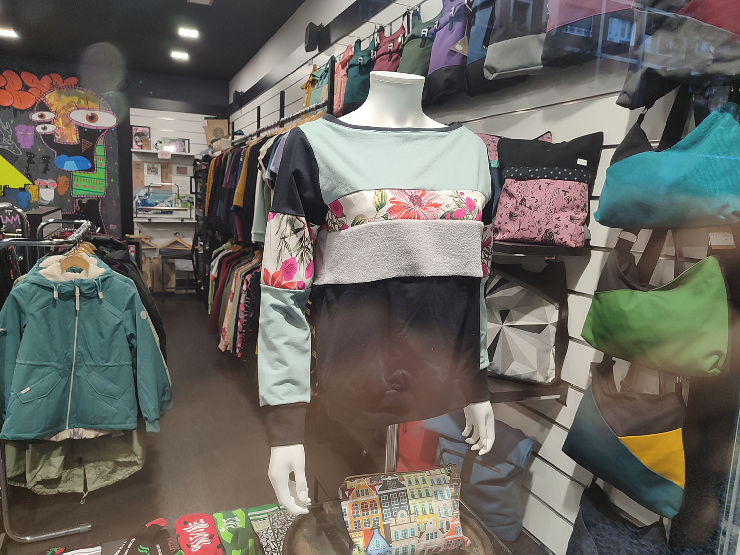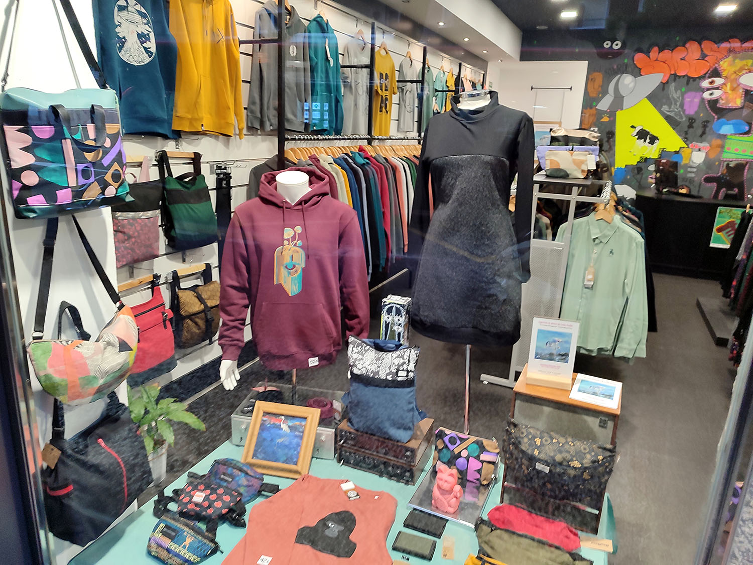 Tienda de ropa y complementos con garantías sociales y vegana donde podrás encontrar nuestra colección propia (los diseños son fruto de la colaboración con distintos artistas), el algodón es 100% orgánico y el proceso de estampado se realiza en nuestro taller de forma ecológica; así como otras marcas artesanas de ropa, complementos, bisutería artesana, etc. con garantías sociales, incluso algunas de km. 0.